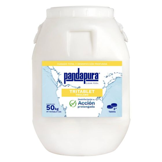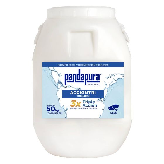 Tricloro triple acción en tabletas de 3”, 50 kg (paquetes de 5 pastillas). Modelo: PP-ACCIONTRI-50K$ 2,711.21$ 3,637.00